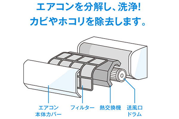 ダスキンでは「フィルター掃除」や「自動お掃除機能での掃除」だけでは掃除が難しい場所までホコリ、カビを除去できます。