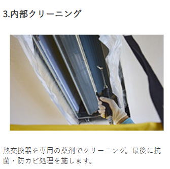 専門の知識を持ったスタッフがエアコンを分解・洗浄。洗浄後は、熱交換器など1つひとつに抗菌・防カビ処理を施し、丁寧に仕上げます。