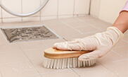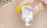 スピーディーかつ確実に洗浄するため、汚れの種類や状態をしっかり確認。浴槽や壁・床など、それぞれの材質に合わせて最適な薬剤と道具を使用します。