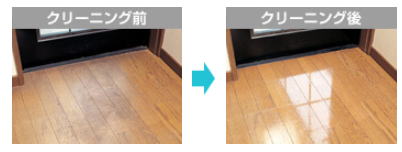 クリーニング前クリーニング後フローリング掃除の後は汚れが除去され、素材本来の美しいツヤが生まれます。