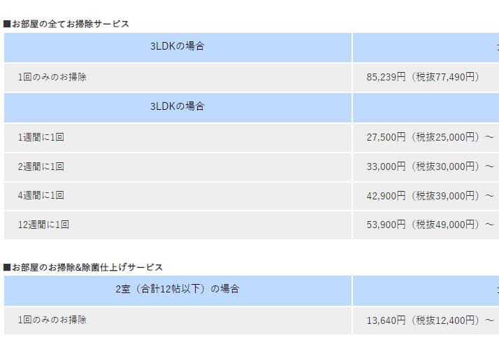 (定期お掃除サービスでは、初回にご要望のすべてのお部屋の汚れを落とす念入りなお掃除をします。そのため初回のみ、通常サービス料金にプラスして別途料金をいただいています。詳しくはお見積り時にお問い合わせください。)
